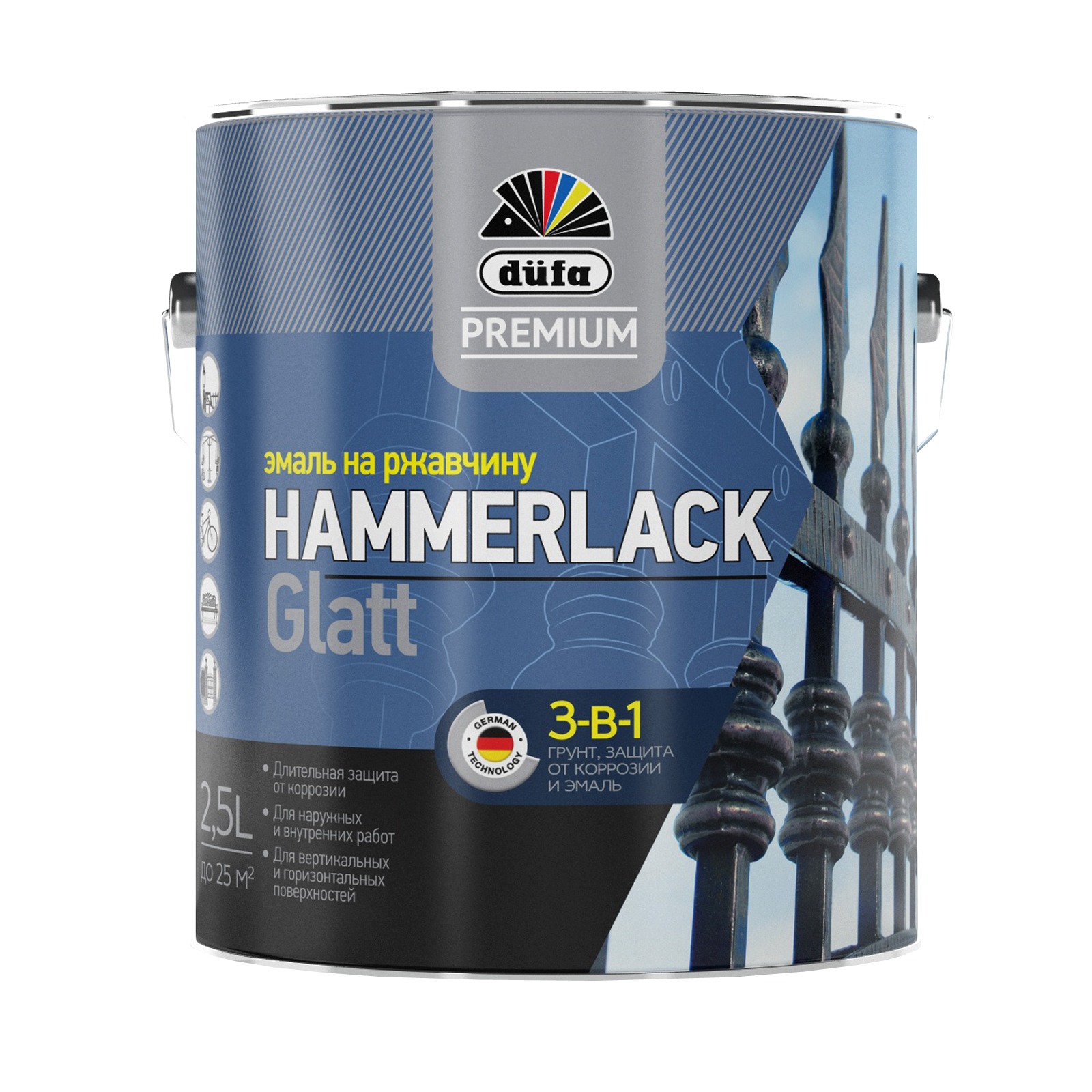 Система 3-в-1: грунт, защита от коррозии и эмаль. Удобна в нанесении, легка в обработке, имеет высокую адгезию к основанию. Образует эластичные, влагостойкие, атмосферостойкие, износостойкие покрытия со стабильным глянцем и отменным декоративным эффектом. Устойчива к перепадам влажности и температурным режимам. Хорошая стойкость к бытовым химикатам и кратковременному воздействию моторного топлива и масел.