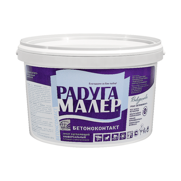 Применяется для предварительной обработки бетона, бетонных блоков, изделий из пенобетона, плотных минеральных оснований перед нанесением гипсовых и цементных выравнивающих штукатурок, латексных шпатлевок, клея для плитки. Пригоден для обработки старых, но прочно держащихся масляных и алкидных красок. После нанесения бетоноконтакт образует шероховатую поверхность.