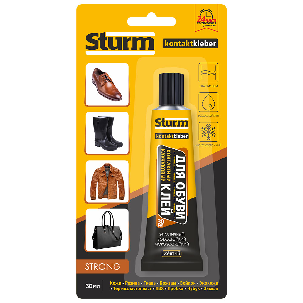 Клей контактный "STURM" ДЛЯ ОБУВИ, желтый, 30мл на единич. блистере (12шт)