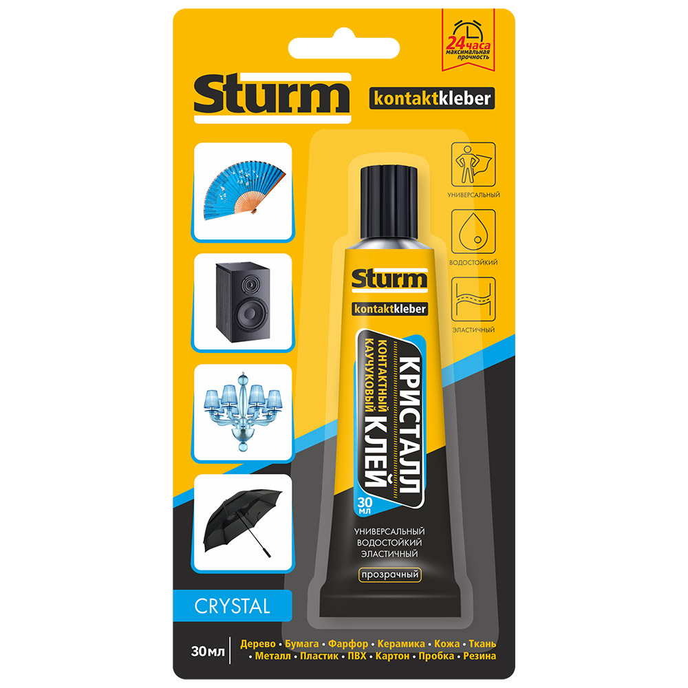 Клей контактный "STURM" КРИСТАЛЛ, прозрачный, 30мл на единич. блистере (12шт)