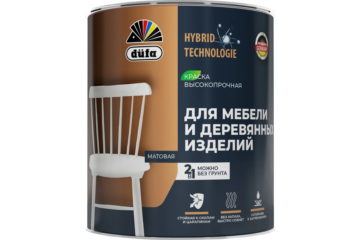 Высокоэластичная матовая краска для мебели, плинтусов, наличников и любых других деревянных изделий. Образует устойчивое к царапинам и сколам покрытие, отлично отталкивает загрязнения. Краска обладает высокой адгезией, комфортно наносится без брызг и потеков Высокая кроющая способность сокращает этапы работ при покраске. Водоотталкивающие свойства и высокая паропроницаемость способствуют сухому состоянию дерева. Экологична, может использоваться в детских учреждениях и помещениях административной группы лечебно-профилактических учреждений.