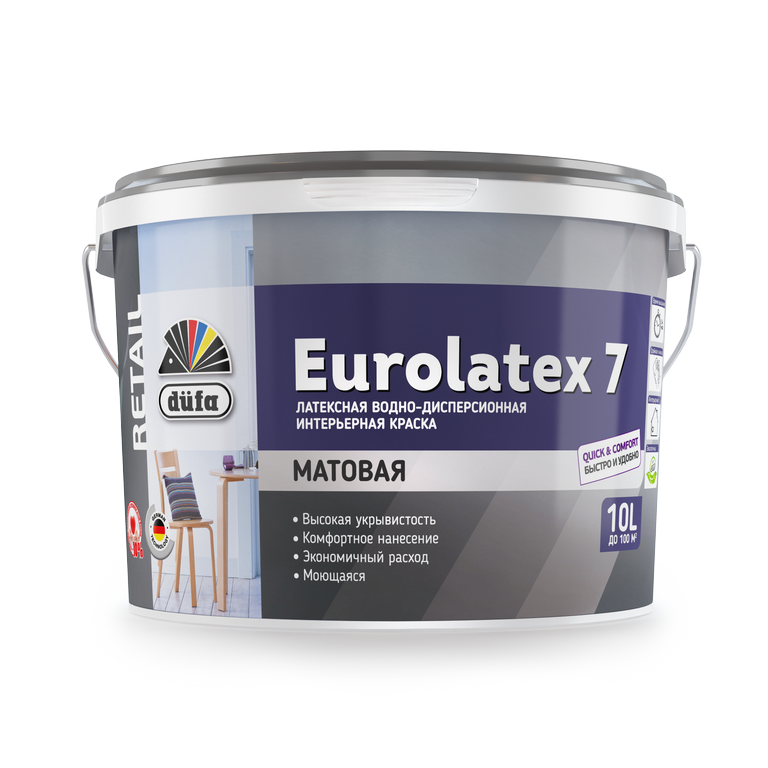 Предназначена для окраски потолков и стен внутри помещений с умеренной влажностью, таких как спальни, гостиные, кабинеты, коридоры. Гардеробные и т.п. Сертифицирована для применения в детских и медицинских учреждениях. Подходит для нанесения на различные виды оснований, такие как штукатурка, бетон, кирпичная кладка, гипсокартон, стеклообои, структурные бумажные или виниловые обои, а также для перекрашивания прочных старых покрытий. Матовая водно-дисперсионная краска для стен и потолков. Образует ровное влагостойкое покрытие с высокой прочностью сцепления с основанием. Стойка к истиранию. Допускает мытье с применением неагрессивных бытовых моющих средств, допускает многократное ремонтное перекрашивание. Отличается высокой укрывистостью и экономичным расходом. Краска легко наносится, быстро высыхает. Экологически безопасна. Сертифицирована для детских и медицинских учреждений.