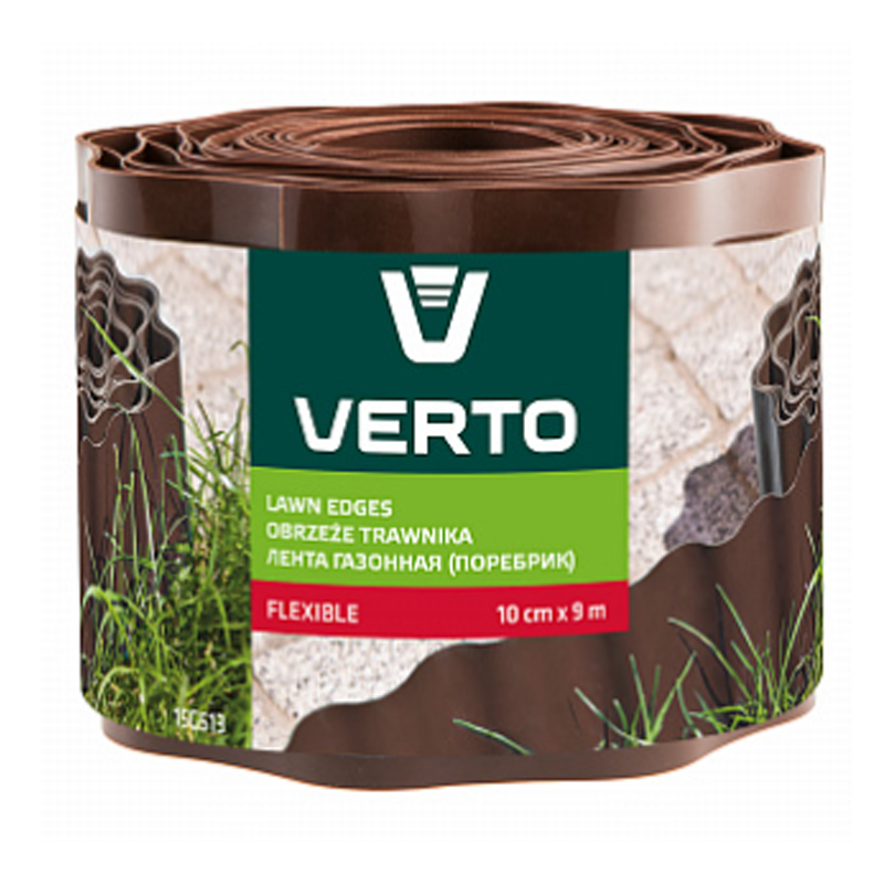 Бордюр для газонов VERTO (арт. 15G513), длина 9 м, ширина 10 см, коричневого цвета. Изготовлен из эластичной пластмассы.