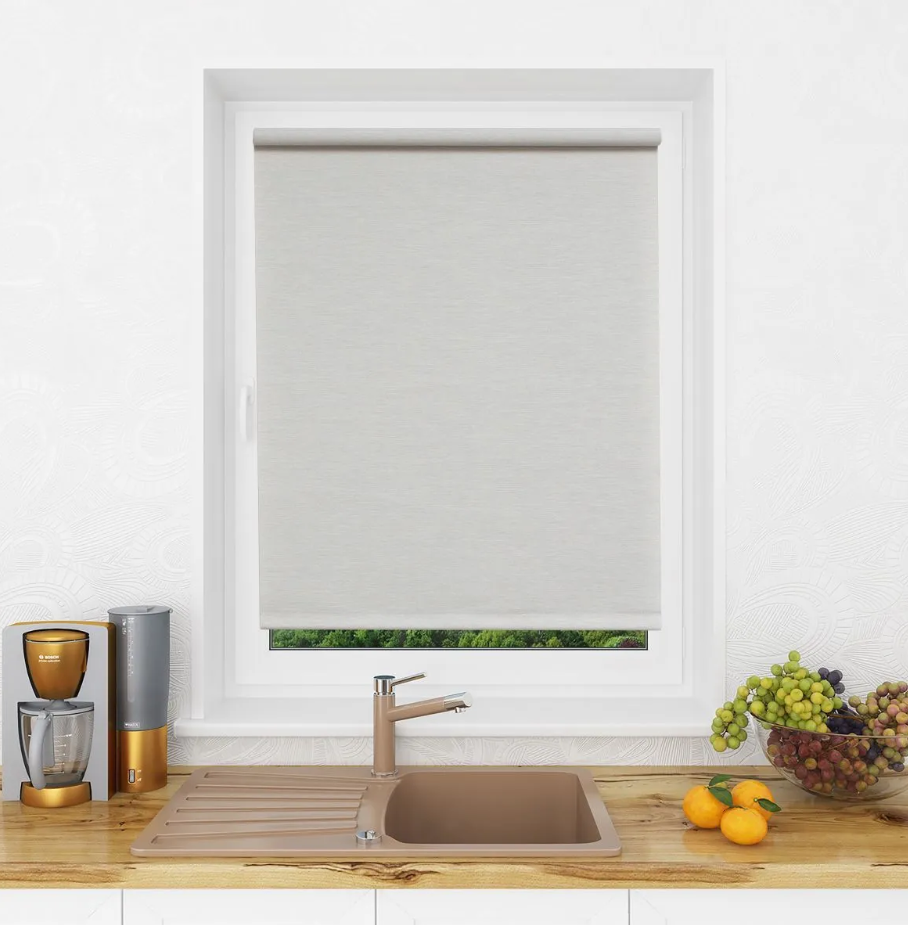 Штора на трубе 17мм 1 шт, механизм управления с пластиковой цепочкой 1шт, кронштейны для крепления 2 шт, площадки для крепления 2 шт, двухсторонняя клейкая лента под площадки 2 шт, утяжелитель пластиковый 1шт, этикетка с инструкцией на обратной стороне 1 шт.