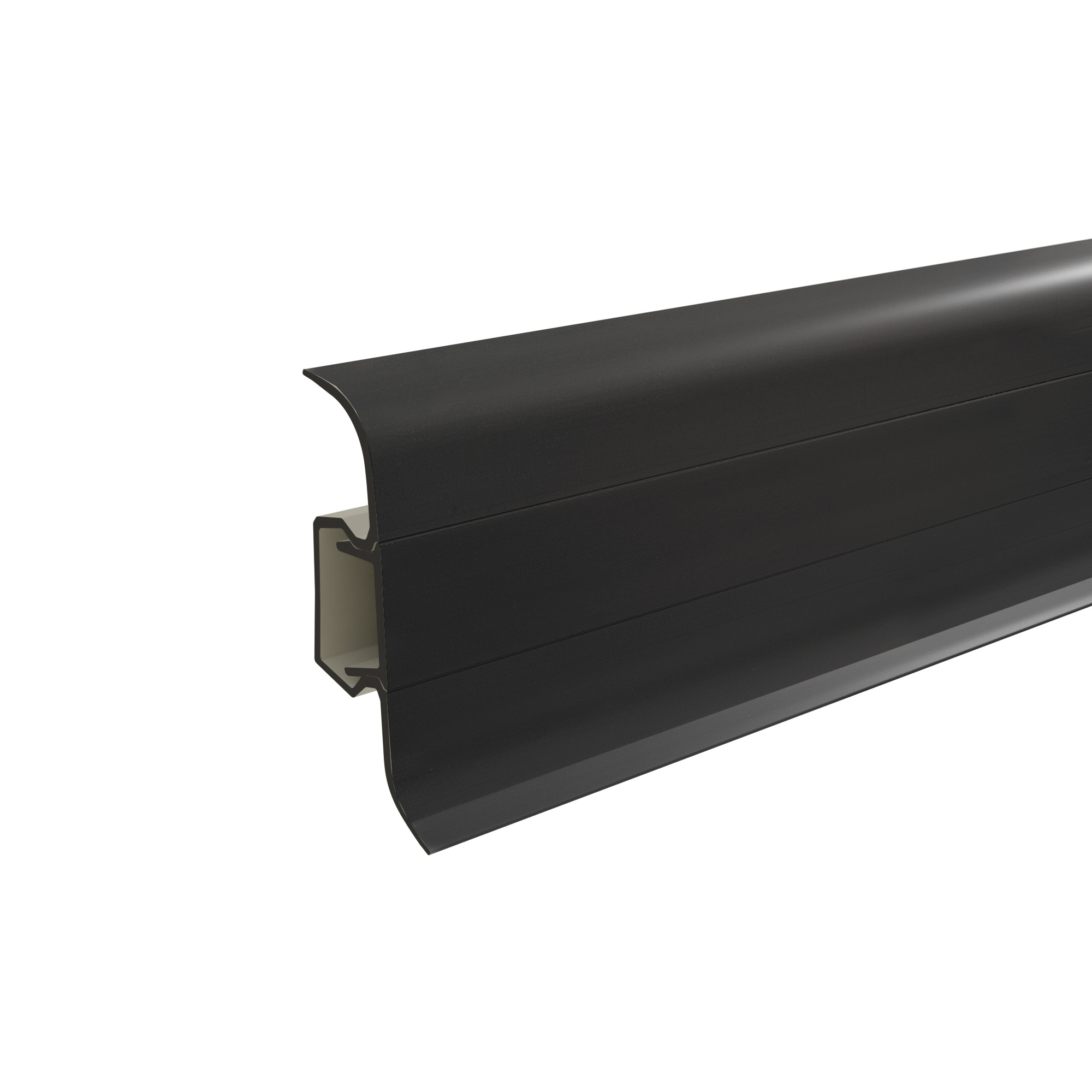 Technical состоит из двух частей: базовой планки и маскирующего элемента. Такая конструкция позволяет скрыть коммуникации, идущие вдоль стен, а также места крепления плинтуса.