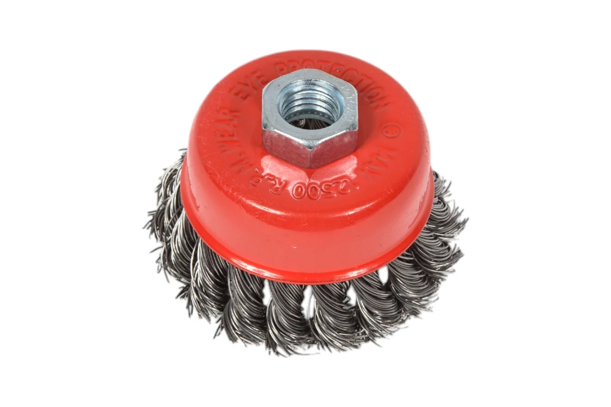 Щетка используется совместно с дрелями. Применяется для зачистки от лака, краски и ржавчины различных поверхностей. Рабочая часть состоит из скрученной в пучки стальной проволоки толщиной 0,5 мм.