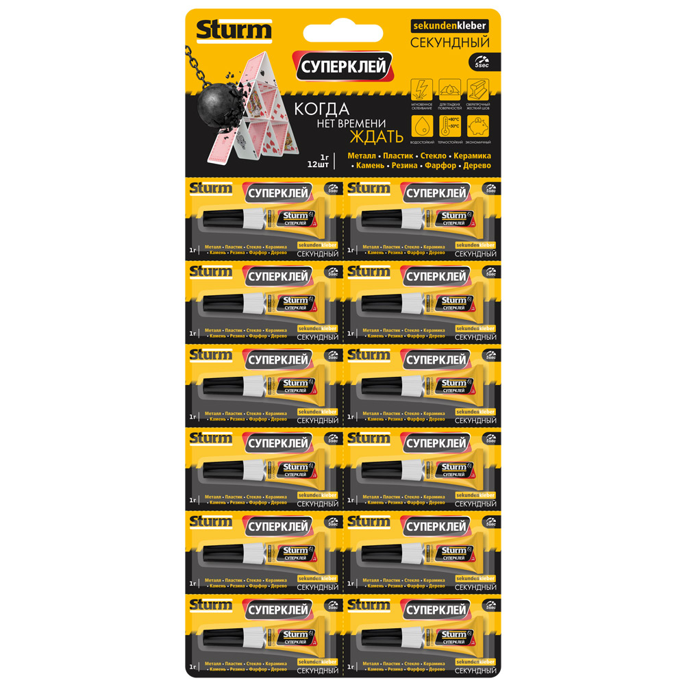 Суперклей "STURM", 1г, на мультикарте (12шт)