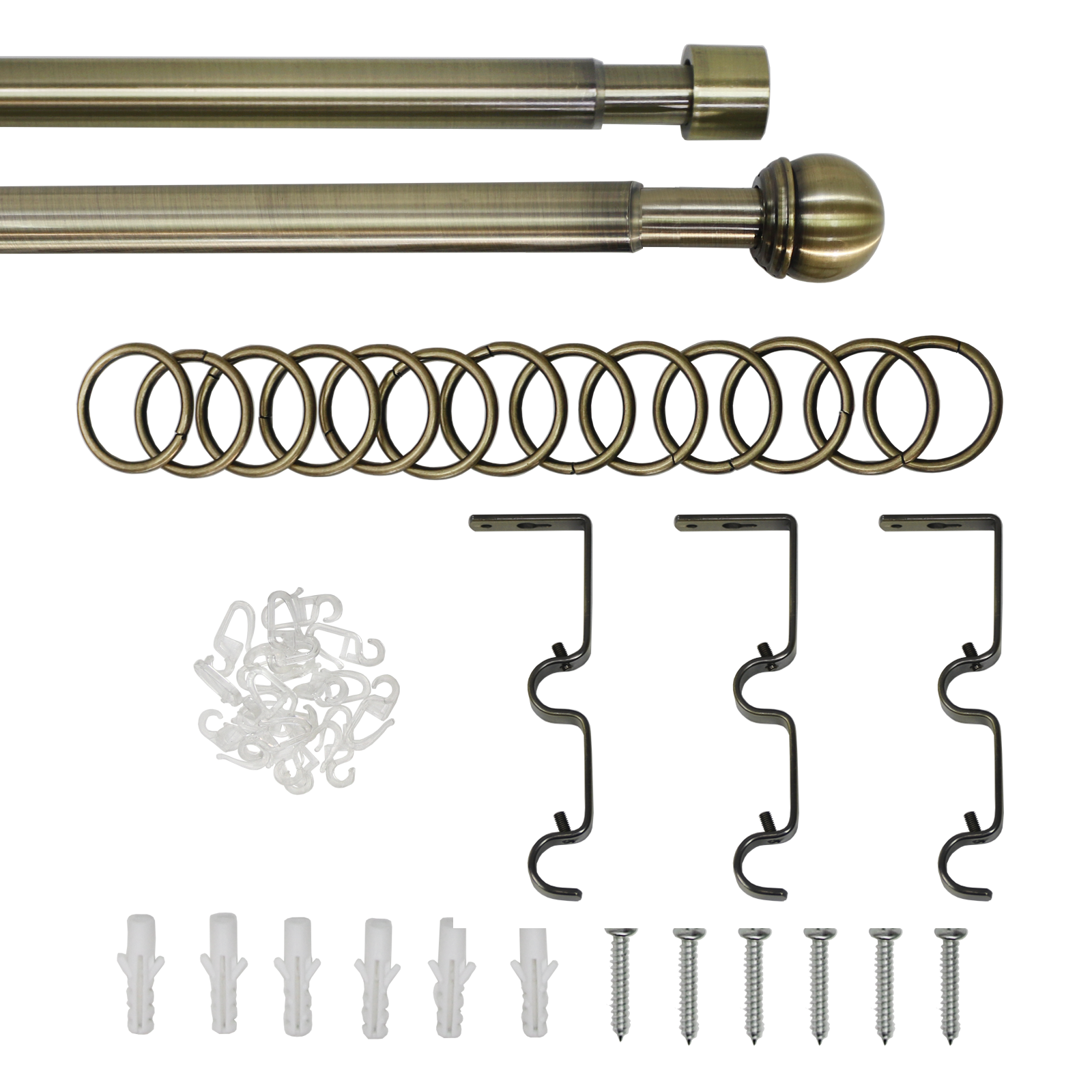 | Комплектация | 2 штанги, 2 наконечника, 2 заглушки, 3 двойных держателя для штанги, 64 кольца для крючка, 64 крючка |
