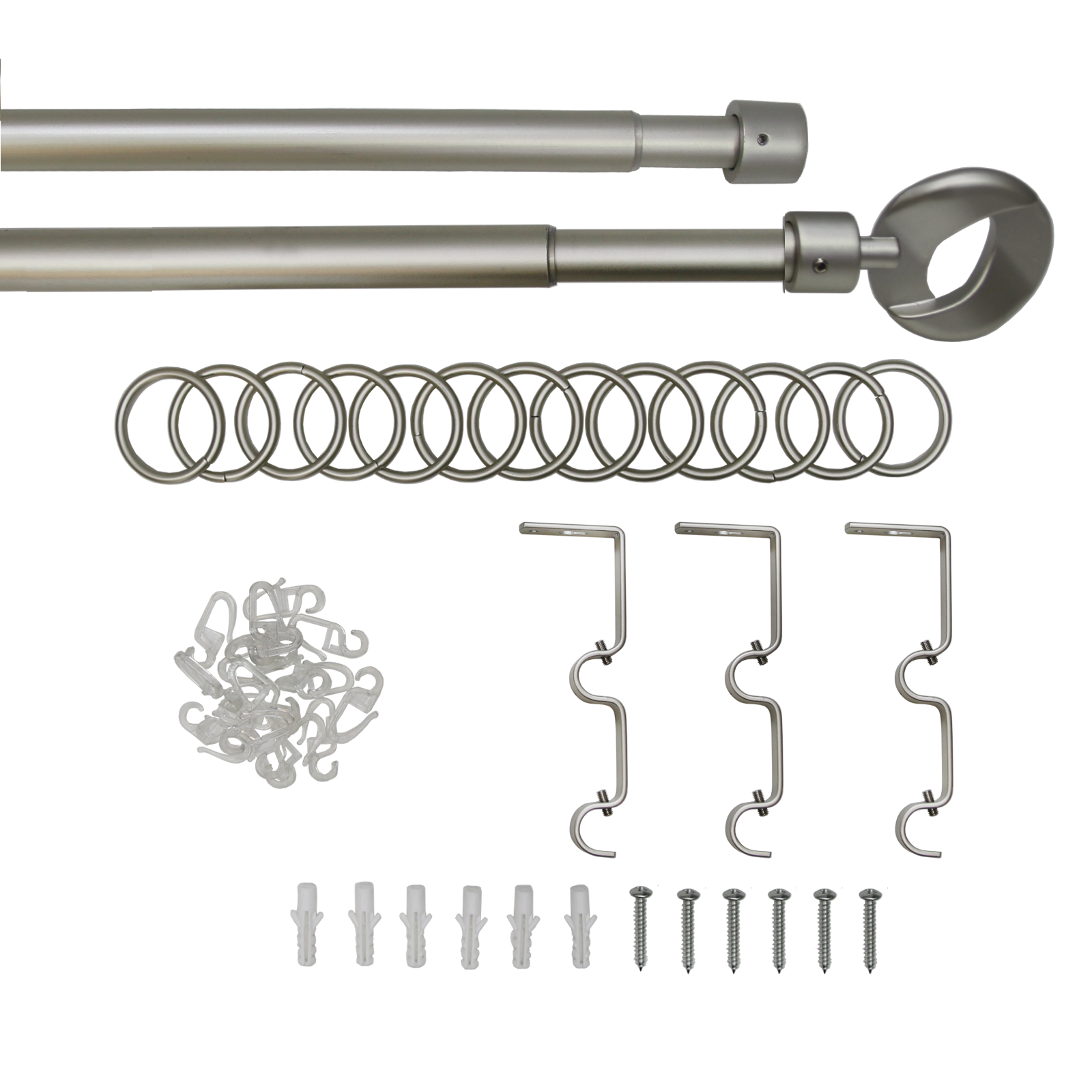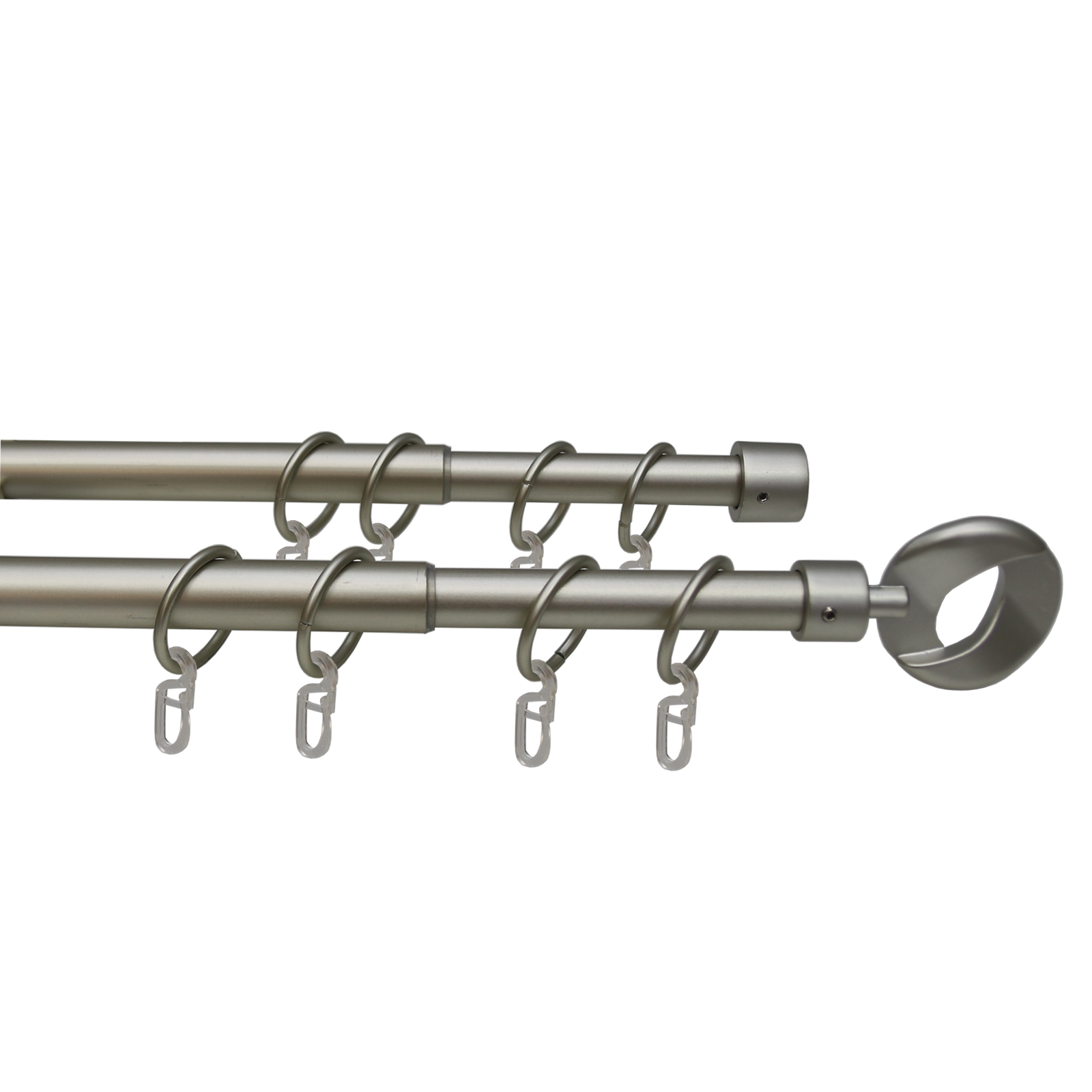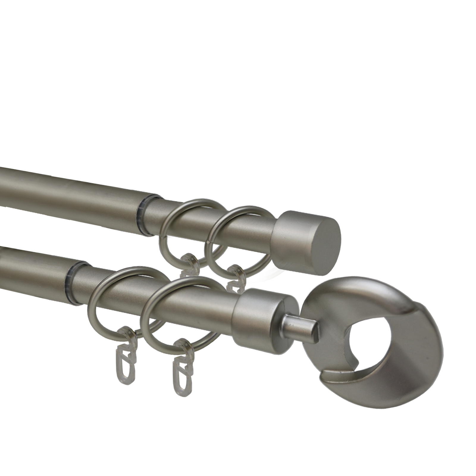 Данный карниз практичное и стильное решение для подвеса штор, сделан из долговечного и прочного материала. Главным преимуществом раздвижного карниза является возможность регулировки длины штанги в зависимости от заданных размеров помещения. Эти держатели для штор представляют собой две металлические трубки, вставленные друг в друга. За счет внутреннего поворотного механизма меньшая по диаметру штанга может выдвигаться из большей или задвигаться на всю свою длину.