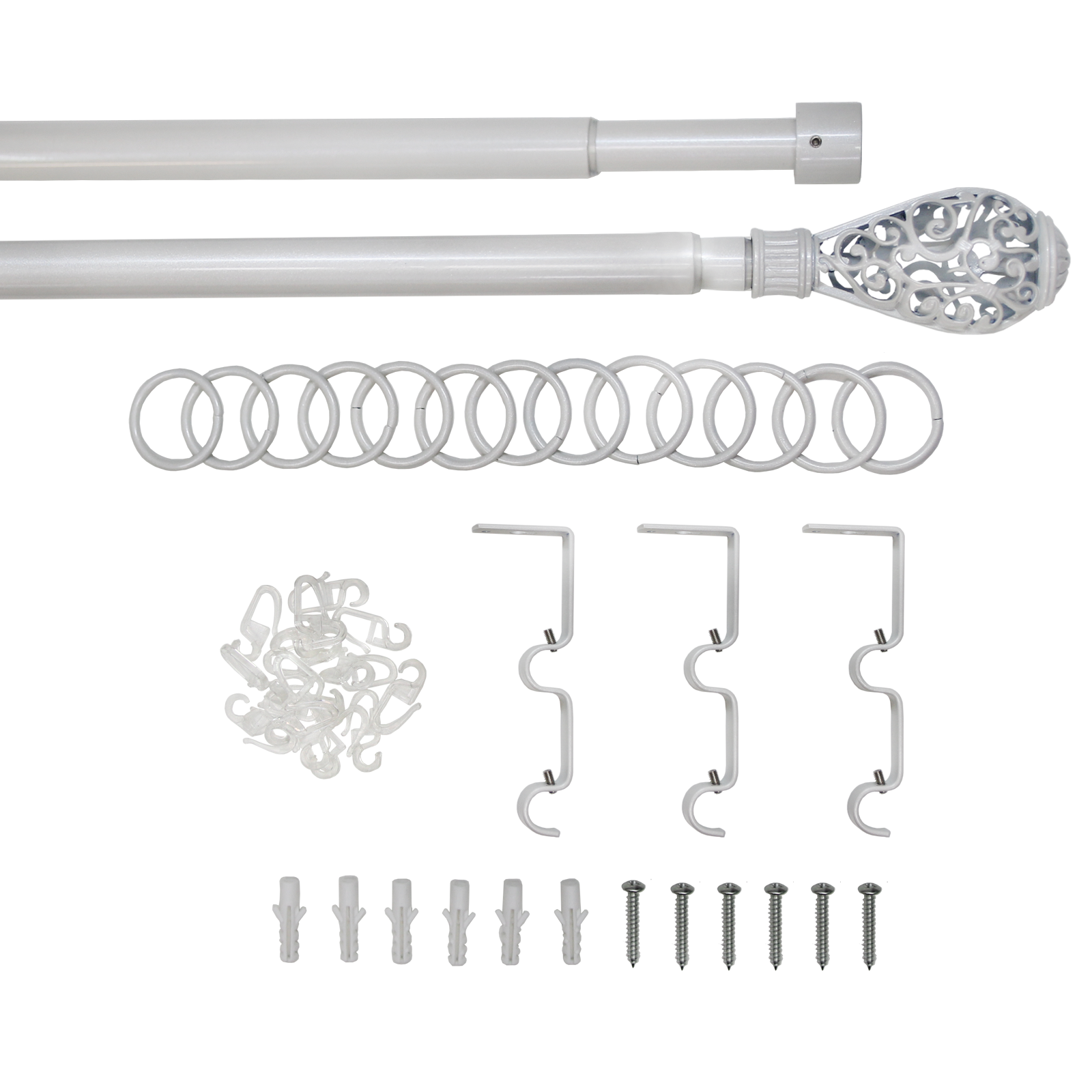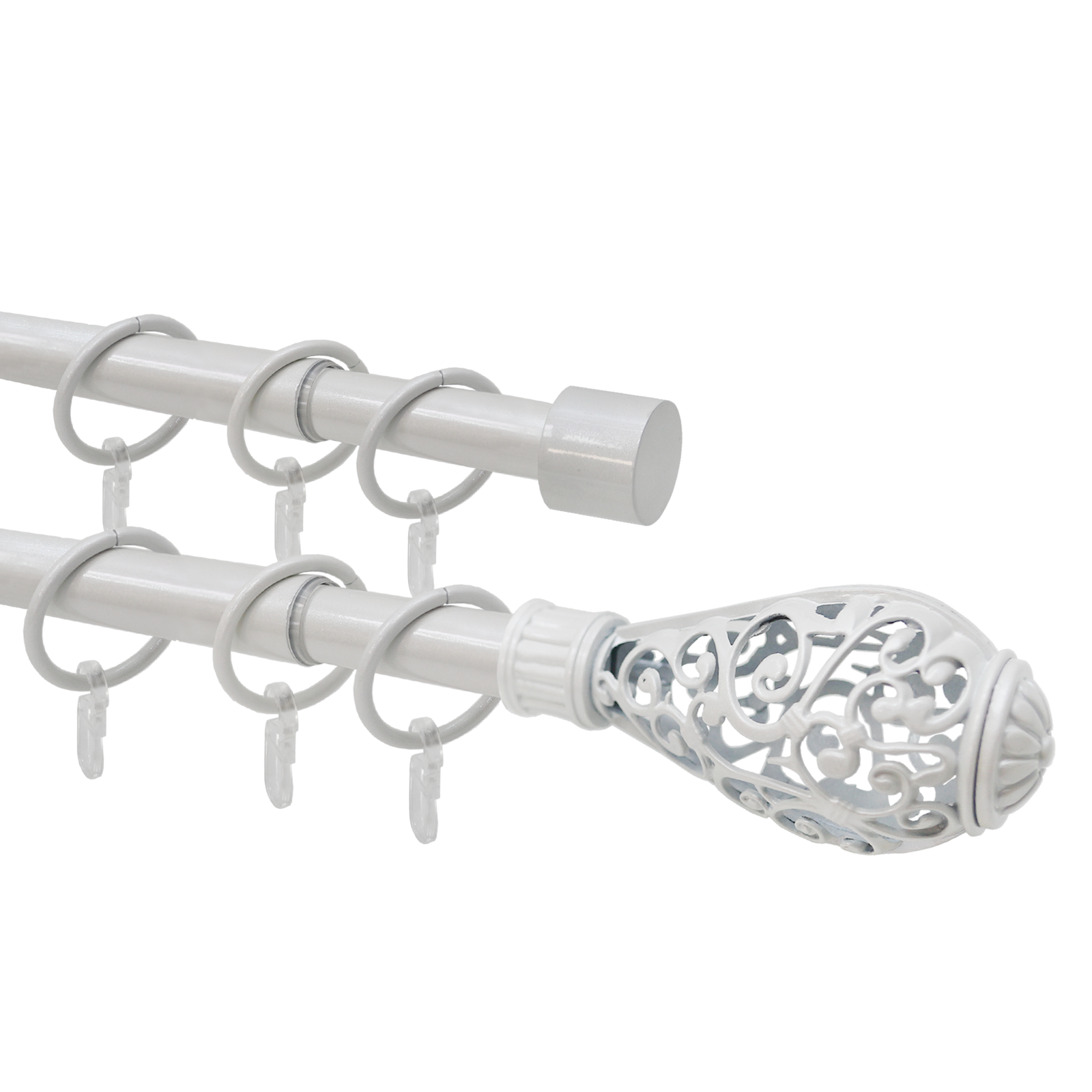 Данный карниз практичное и стильное решение для подвеса штор, сделан из долговечного и прочного материала. Главным преимуществом раздвижного карниза является возможность регулировки длины штанги в зависимости от заданных размеров помещения. Эти держатели для штор представляют собой две металлические трубки, вставленные друг в друга. За счет внутреннего поворотного механизма меньшая по диаметру штанга может выдвигаться из большей или задвигаться на всю свою длину.