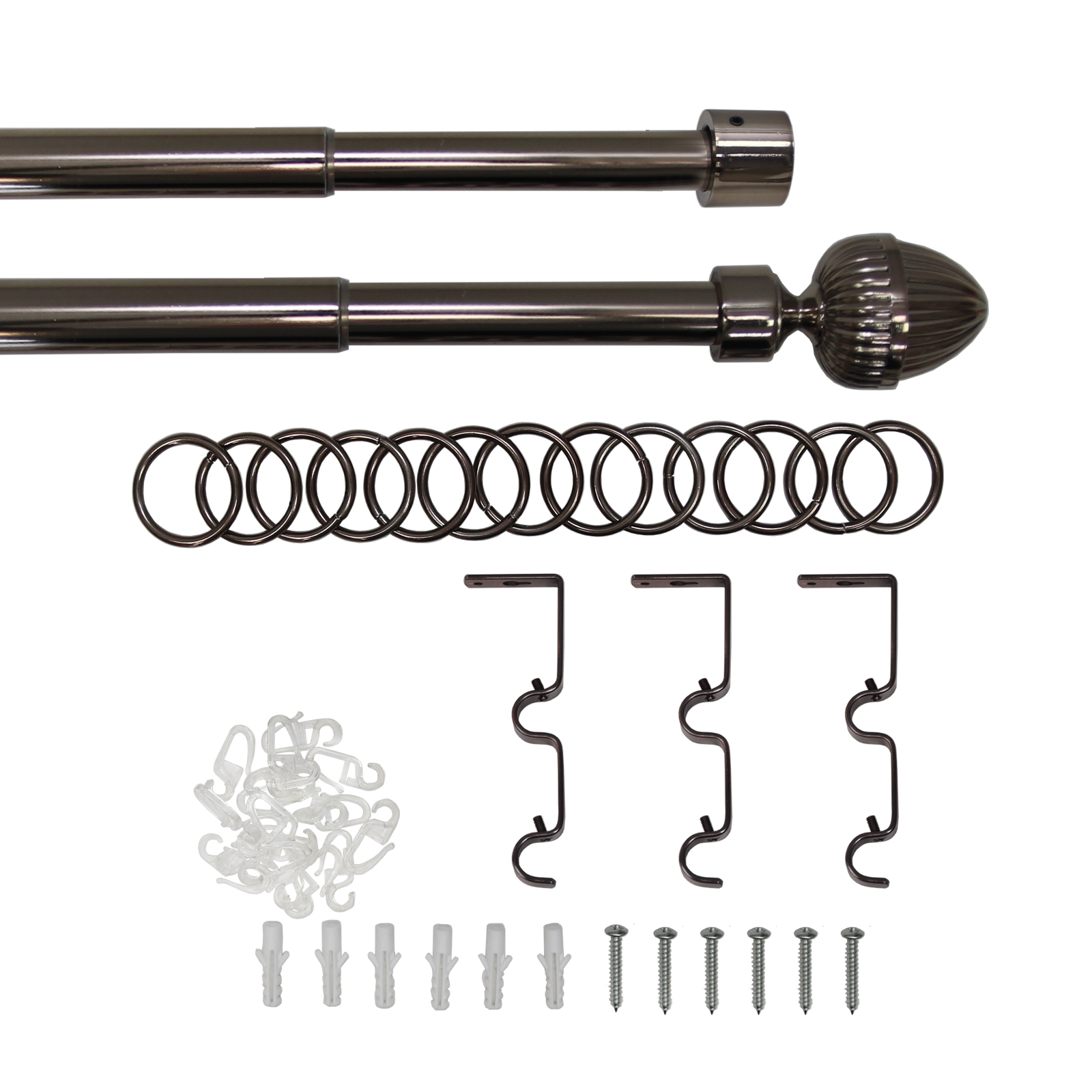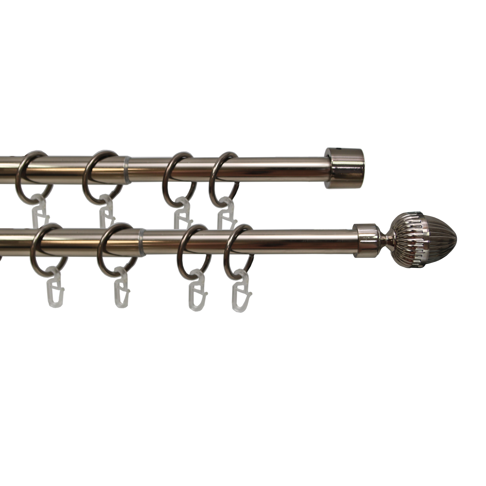 Данный карниз практичное и стильное решение для подвеса штор, сделан из долговечного и прочного материала. Главным преимуществом раздвижного карниза является возможность регулировки длины штанги в зависимости от заданных размеров помещения. Эти держатели для штор представляют собой две металлические трубки, вставленные друг в друга. За счет внутреннего поворотного механизма меньшая по диаметру штанга может выдвигаться из большей или задвигаться на всю свою длину.