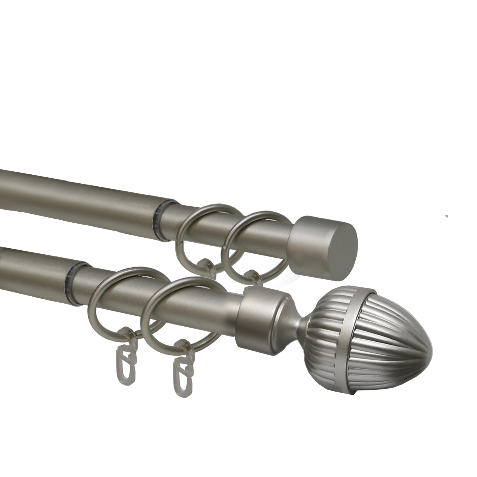 Данный карниз практичное и стильное решение для подвеса штор, сделан из долговечного и прочного материала. Главным преимуществом раздвижного карниза является возможность регулировки длины штанги в зависимости от заданных размеров помещения. Эти держатели для штор представляют собой две металлические трубки, вставленные друг в друга. За счет внутреннего поворотного механизма меньшая по диаметру штанга может выдвигаться из большей или задвигаться на всю свою длину.