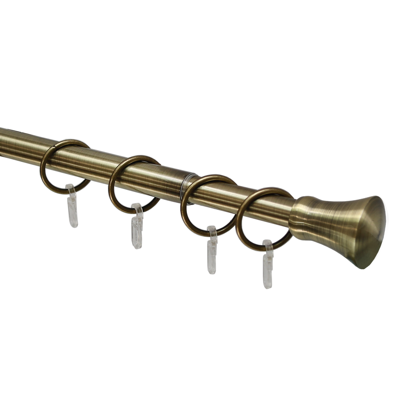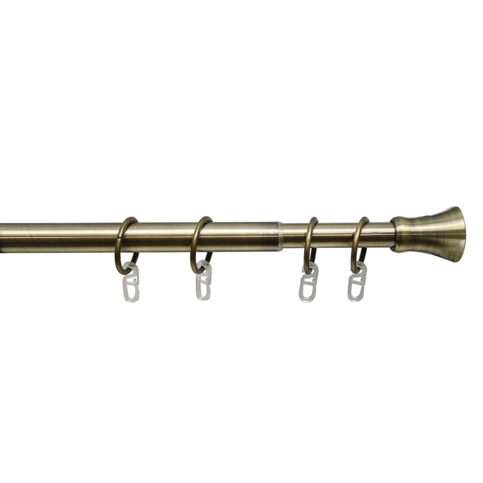 Данный карниз практичное и стильное решение для подвеса штор в один слой, сделан из долговечного и прочного материала. Телескопическая штанга позволяет подогнать длину карниза под размеры оконного проема, регулируется в диапазоне от 160 до 320 см. Карниз состоит из 2 трубок разного диаметра, вставленных друг в друга. Диаметр большей трубки 19 мм, диаметр меньшей трубки — 16 мм. За счет внутреннего поворотного механизма меньшая по диаметру штанга может выдвигаться из большей или задвигаться на всю свою длину.