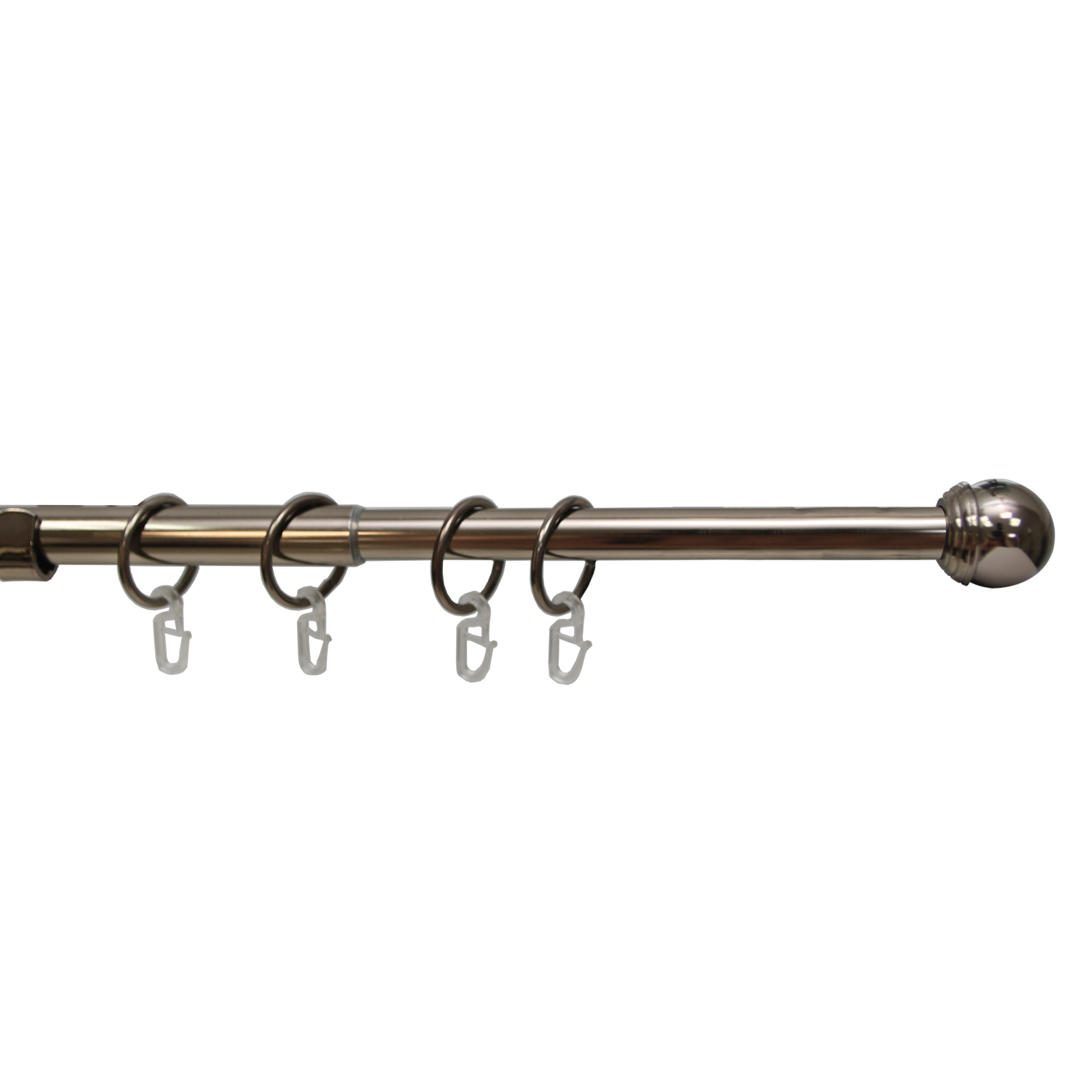 Данный карниз практичное и стильное решение для подвеса штор в один слой, сделан из долговечного и прочного материала. Телескопическая штанга позволяет подогнать длину карниза под размеры оконного проема, регулируется в диапазоне от 160 до 320 см. Карниз состоит из 2 трубок разного диаметра, вставленных друг в друга. Диаметр большей трубки 19 мм, диаметр меньшей трубки — 16 мм. За счет внутреннего поворотного механизма меньшая по диаметру штанга может выдвигаться из большей или задвигаться на всю свою длину.