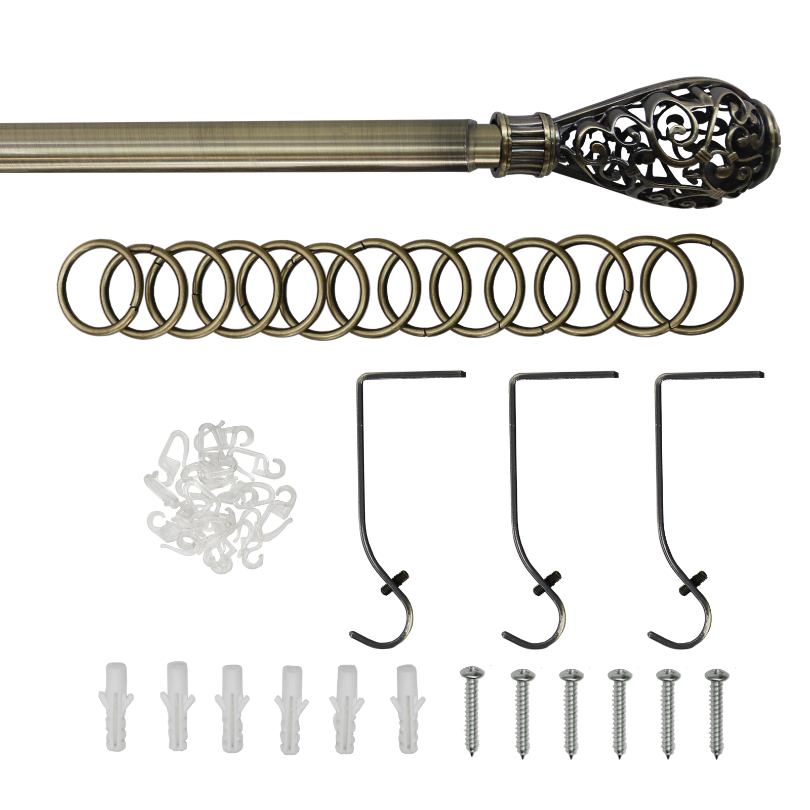 | Комплектация | 1 штанга, 2 наконечника, 3 держателя для штанги, 32 кольца для крючка, 32 крючка |