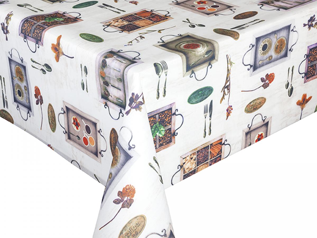 Поверхность скатерти матовая, имеет ярко выраженную тканевую текстуру.