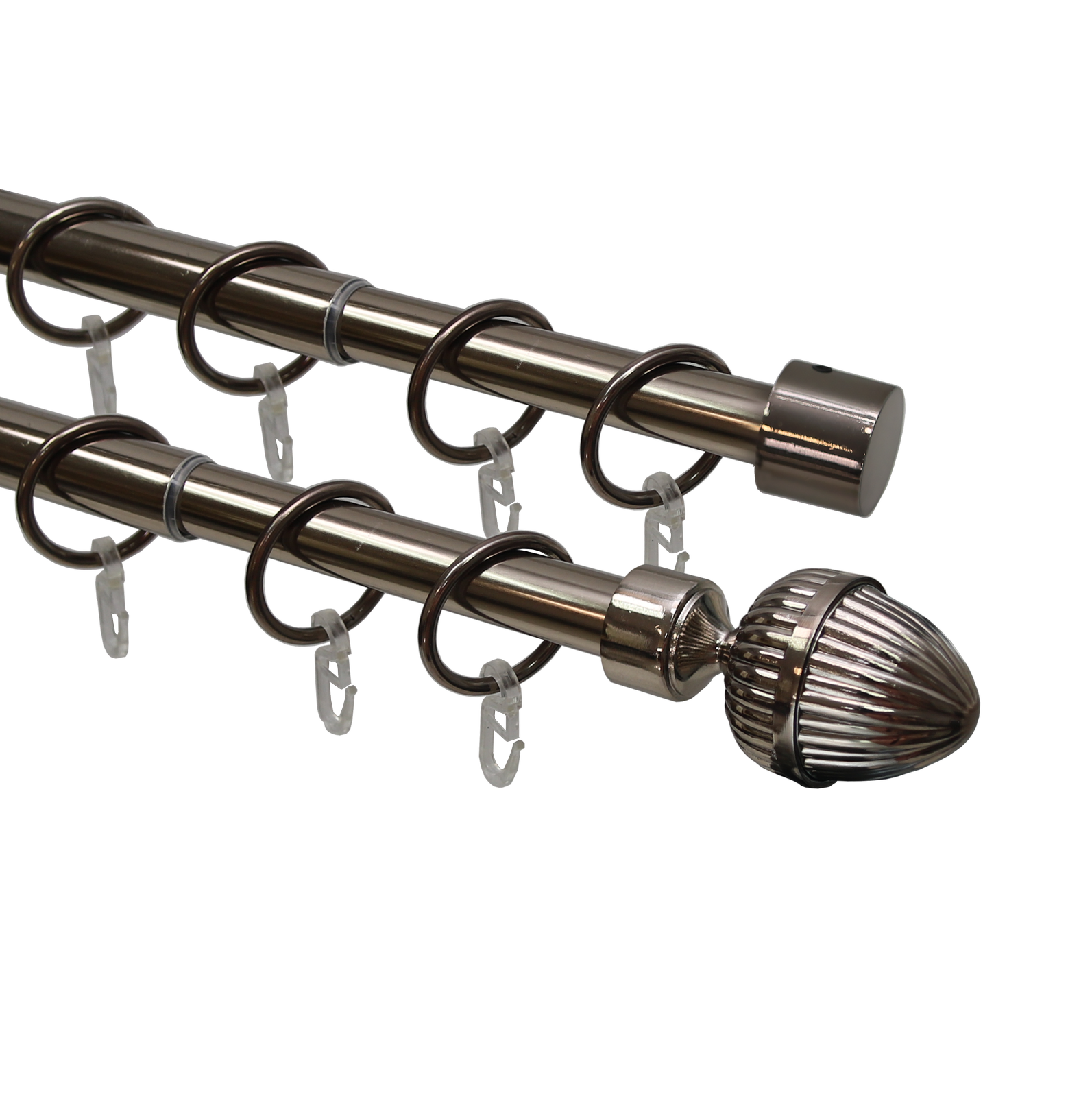 Данный карниз практичное и стильное решение для подвеса штор, сделан из долговечного и прочного материала. Главным преимуществом раздвижного карниза является возможность регулировки длины штанги в зависимости от заданных размеров помещения. Эти держатели для штор представляют собой две металлические трубки, вставленные друг в друга. За счет внутреннего поворотного механизма меньшая по диаметру штанга может выдвигаться из большей или задвигаться на всю свою длину.