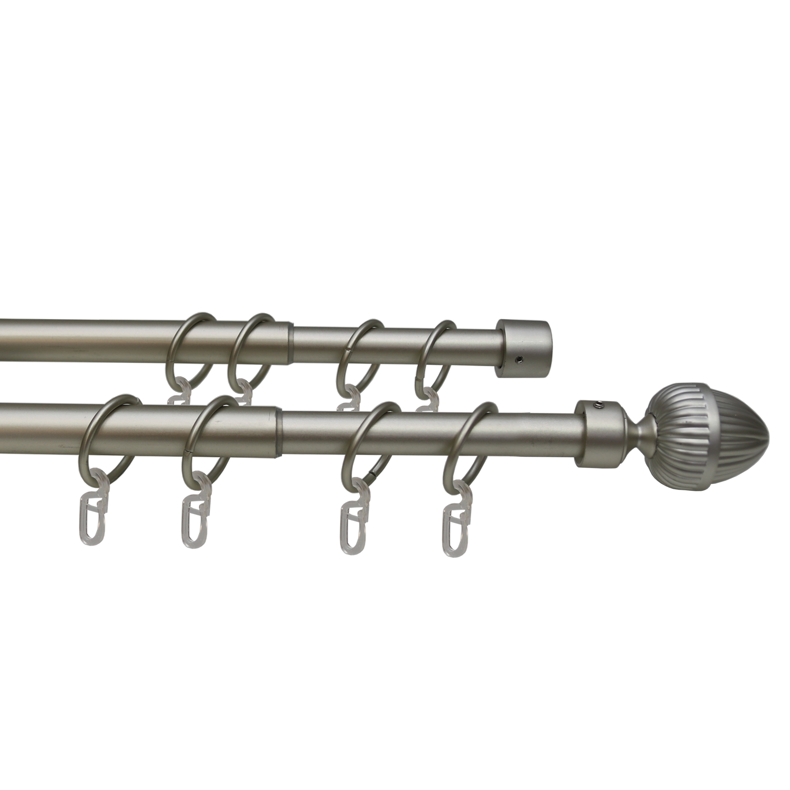 Данный карниз практичное и стильное решение для подвеса штор, сделан из долговечного и прочного материала. Главным преимуществом раздвижного карниза является возможность регулировки длины штанги в зависимости от заданных размеров помещения. Эти держатели для штор представляют собой две металлические трубки, вставленные друг в друга. За счет внутреннего поворотного механизма меньшая по диаметру штанга может выдвигаться из большей или задвигаться на всю свою длину.