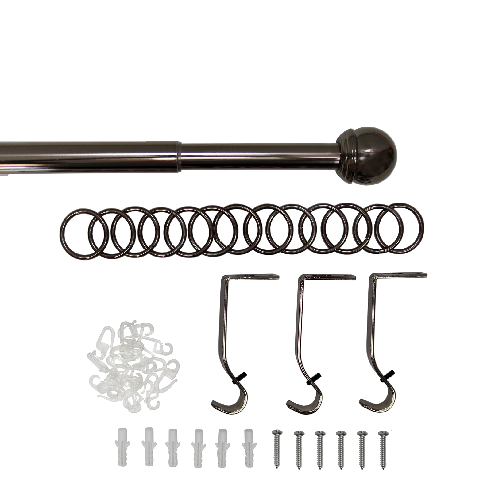 | Комплектация | 1 штанга, 2 наконечника, 3 держателя для штанги, 32 кольца для крючка, 32 крючка |