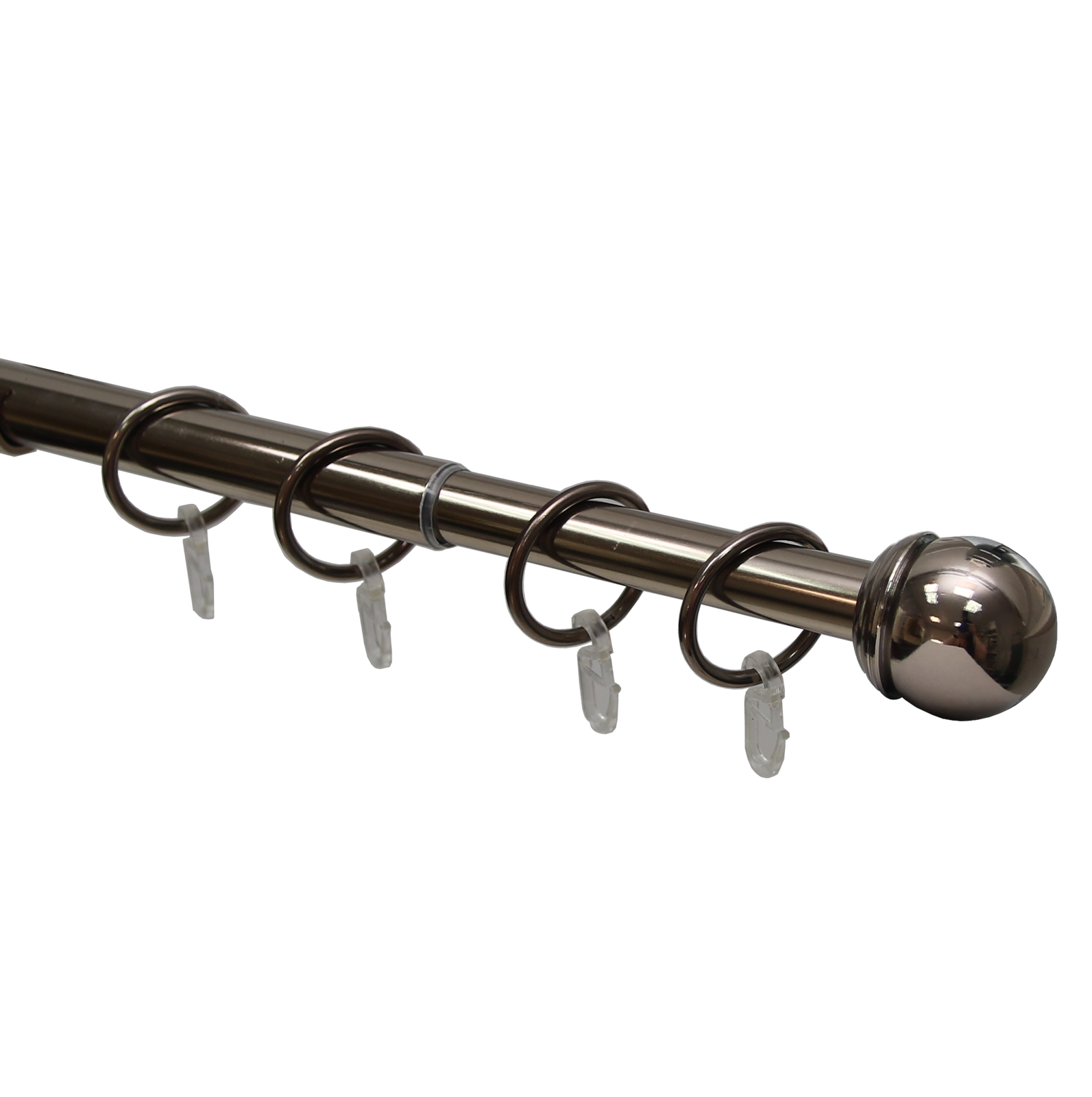 Данный карниз практичное и стильное решение для подвеса штор в один слой, сделан из долговечного и прочного материала. Телескопическая штанга позволяет подогнать длину карниза под размеры оконного проема, регулируется в диапазоне от 160 до 320 см. Карниз состоит из 2 трубок разного диаметра, вставленных друг в друга. Диаметр большей трубки 19 мм, диаметр меньшей трубки — 16 мм. За счет внутреннего поворотного механизма меньшая по диаметру штанга может выдвигаться из большей или задвигаться на всю свою длину.